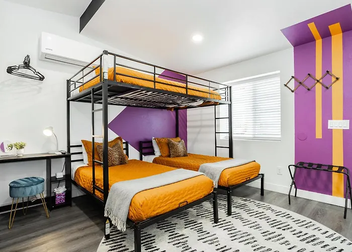 Le gîte dispose d'une cuisine équipée, ainsi que d'un coin repas extérieur pour le confort des clients. La restauration en libre-service sur place comprend également un four et un lave-vaisselle. Vous pourrez dîner à Denny's, situé non loin de la villa. Villa est accessible en voiture en 15 minutes depuis l'aéroport international McCarran de Las Vegas.